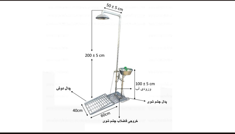 توضیح بسیار مهم : حداقل فشار آب ورودی به این دوش و چشم شوی ها بایستی ۶ بار باشد .
