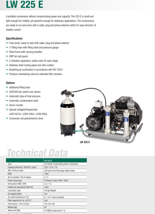 مشخصات کمپرسور هوای تنفسی فشرده LW 225E