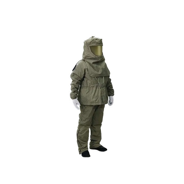 این لباس کامل شامل سرپوش AR1 ,اورکت AR2 و شلوار پیش سینه دار بندی AR3 که از منسوج با مقاومت حرارتی بسیار بالا ,در چند لایه و در عین سبکی و راحتی کامل, تولید گردیده است. دیرسوزی و مقاومت حرارتی بالای لباس حاصل استفاده از پارچه های بافته از متا و پارا آراماید و پلی اکریلونیتریل اکسید شده (OPAN) می باشد که در چند لایه با ویژگی آنتی استاتیک و دوخت با نخ Kevlar, بالاترین سطح ایمنی و کمترین خطر آسیب جانی را برای اپراتور در هنگام مواجهه با انفجار الکتریکی تابلوهای برق و سایر تجهیزات برقی فراهم می نماید.
