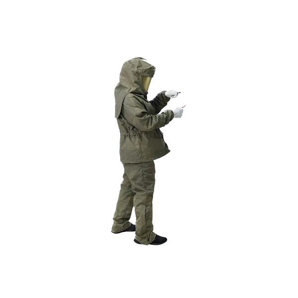 این لباس کامل شامل سرپوش AR1 ,اورکت AR2 و شلوار پیش سینه دار بندی AR3 که از منسوج با مقاومت حرارتی بسیار بالا ,در چند لایه و در عین سبکی و راحتی کامل, تولید گردیده است. دیرسوزی و مقاومت حرارتی بالای لباس حاصل استفاده از پارچه های بافته از متا و پارا آراماید و پلی اکریلونیتریل اکسید شده (OPAN) می باشد که در چند لایه با ویژگی آنتی استاتیک و دوخت با نخ Kevlar, بالاترین سطح ایمنی و کمترین خطر آسیب جانی را برای اپراتور در هنگام مواجهه با انفجار الکتریکی تابلوهای برق و سایر تجهیزات برقی فراهم می نماید.
